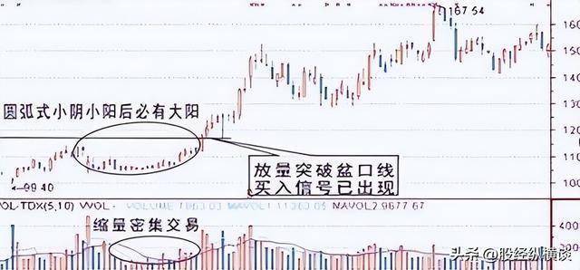 一个是在圆弧底位会出现密集交易区,(密集交易就是说持续几天的K线长短差不多);