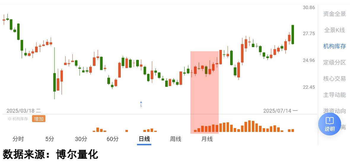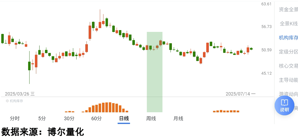 从图里可以清晰看到,早在4月中旬,这只股票就已经有机构资金在积极活动了,那时候稳定币概念还没成为市场焦点。此后,无论股价短期是涨是跌,这种「机构库存」数据在绝大多数时间里都保持着活跃状态,最终股价也走出了一路上扬的行情。这说明,真正的机会,往往在热点被大众熟知之前,就已经有“聪明钱”在默默布局了。